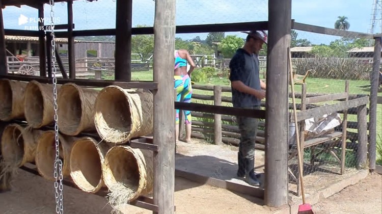 Sabrina Paiva e Rodrigo Phavanello acordaram cedo, nesta sexta-feira (29). O casal cuidou do galinheiro da sede.