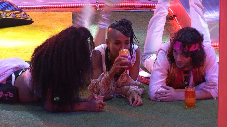 Lumena, Karol Conká e Fiuk falam sobre uma sister na Festa Holi Festival do BBB21. A psicóloga dispara: “Ela tenta mentir”. O cantor diz: “Eu falei coisas que eu não deveria para ajudar ela. Ela falou ‘ah o que eu faço, ela não quer se aproximar de mim’. Ela virou ‘ah, ela não me dá abertura e eu quero conhecer ela’”.